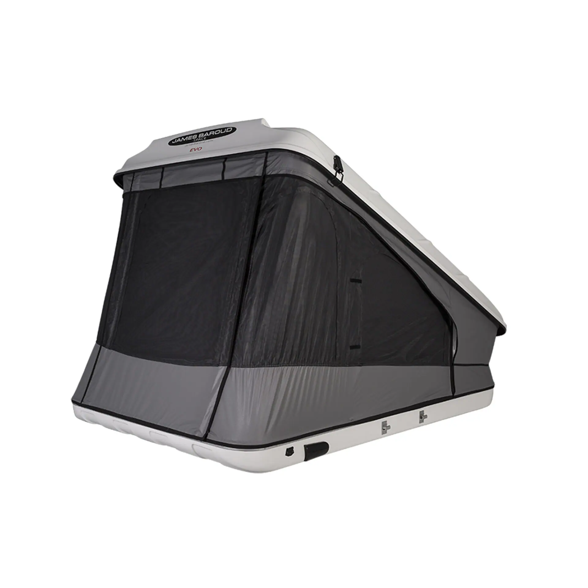 James Baroud Space a fost proiectat pentru a aduce mai multă ușurință celor mai înalți utilizatori datorită unei busole frontale cu 40 cm pentru picioare sau cap. Profilul inovator al acoperișului înclinat crește, de asemenea, circulația aerului prin cort, oferind o aerisire naturală pentru aer mai cald pe măsură ce se ridică. Ușile și ferestrele mari asigură o ventilație superbă cu flux încrucișat, iar ventilatorul de acoperiș alimentat cu energie solară poate fi pornit pentru o ventilație sporită în climatele extreme. Cortul se deschide și se închide în mai puțin de 1 minut, prin patru cilindri hidraulici, montați pe rulmenți, acționând brațele articulate, care sunt protejate de un capac de pânză. O bandă elastică încorporată în jurul pânzei asigură includerea acesteia în interiorul cortului în timpul închiderii.